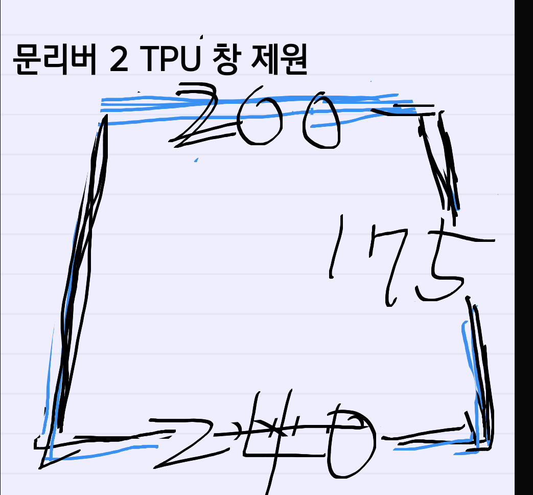 문리버 2 전면 TPU창을 만들어 보았습니다. 아파트 방에텐트를 가지고 오지 못하는 관계로 인터넷에서문리버 2 전면 모기장 사이즈를 찾는데 몇일을 헤멨는데 결론은 정확히 나와 있지 않다 . ㅠ.ㅠ 얼마전텐트에서 사이즈를 적어 왔지만 싸이즈를 적을때 생각하고 TPU창을 만들려고 하는 싸이즈 생각이 바뀌어서 어느 짐작으로 만들었는데 잘 맞았으면 좋겠어요. 세로를 사다리꼴로 재단하기가 어려우니우선 세로로 반을 접고 200Cm ÷ 2 = 100Cm씩 위쪽을 맞추어 점( • )을 찍어 표시해 놓습니다 위쪽 200Cm가 맞는 상태에서 가로 세로가직각인 상태에 아래로 175Cm를 내려 가고 아래쪽 240Cm ÷ 2 = 120Cm를 재어 아래쪽을 맞추어 점( • )을 찍어 표시를 합니다. 위 쪽 점 100Cm..