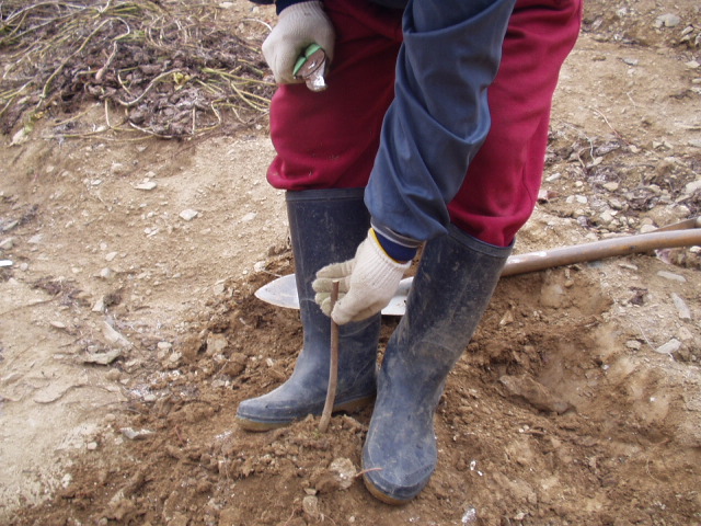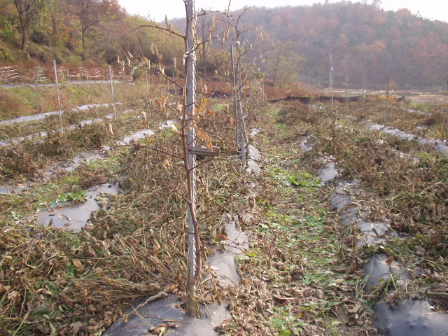 위의 사진은 금년도 봄에 잘라서 심은 과원입니다 보통 1m이상 자랐답니다 너무 자랄까봐 끝을 전정 해줬습니다 성장기에 끝을 잘라주면 세력이 나무 가지로 이동하여 가지의 세력이 튼튼해집니다 다음해 많은 꽃을 피우겠지요 자라면서 꽃을피워 열매를 맺은 나무도 있습니다 (사진상 두번째 나무 끝을 보세요)